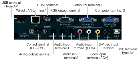 *4 A wireless module that attaches to the USB terminal on the rear of the projector body is supplied.