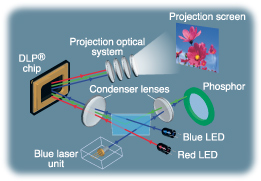 Compared with conventional high-brightness projectors employing mercury lamps, Casio's Hybrid Light Source technology reduces operating costs as well as the time and effort involved in lamp exchange while maintaining clear, high-quality images over an extended period.
