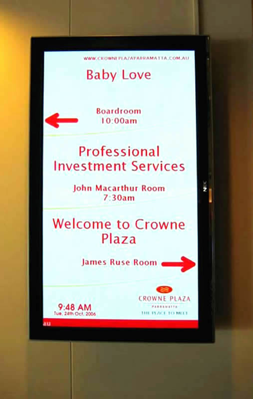 Command's solutions for Foyer wayfinding displays and room entry displays assists hotels in getting the right information and directions to the clients and visitors.